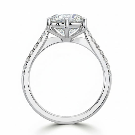 Explore our stunning collection of engagement rings with shoulder stones. These rings combine the brilliance of a central solitaire diamond with the added sparkle of carefully placed shoulder stones. Every detail is crafted with precision, creating a harmonious blend of grace and grandeur. Elevate your proposal with a ring that embodies sophistication and magnificence.