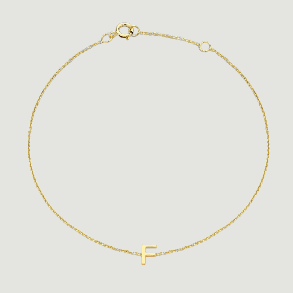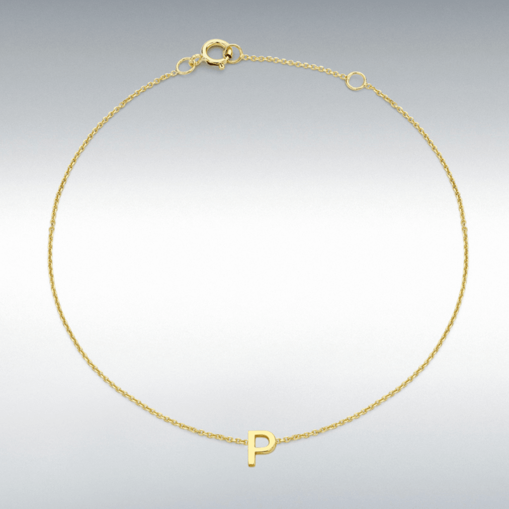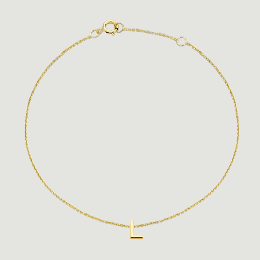 A timeless blend of simplicity and elegance. Each letter, standing gracefully at 5mm, becomes a personal symbol on a delicate bracelet of fine yellow gold. This bracelet is a canvas for your story, sans diamonds, radiating timeless beauty. Adjust the length from a snug 15cm embrace to a graceful 18.5cm drape, allowing your unique style to shine. More than a piece of jewellery, it's a perfect addition to your collection, marking the beginning of your stylish journey.