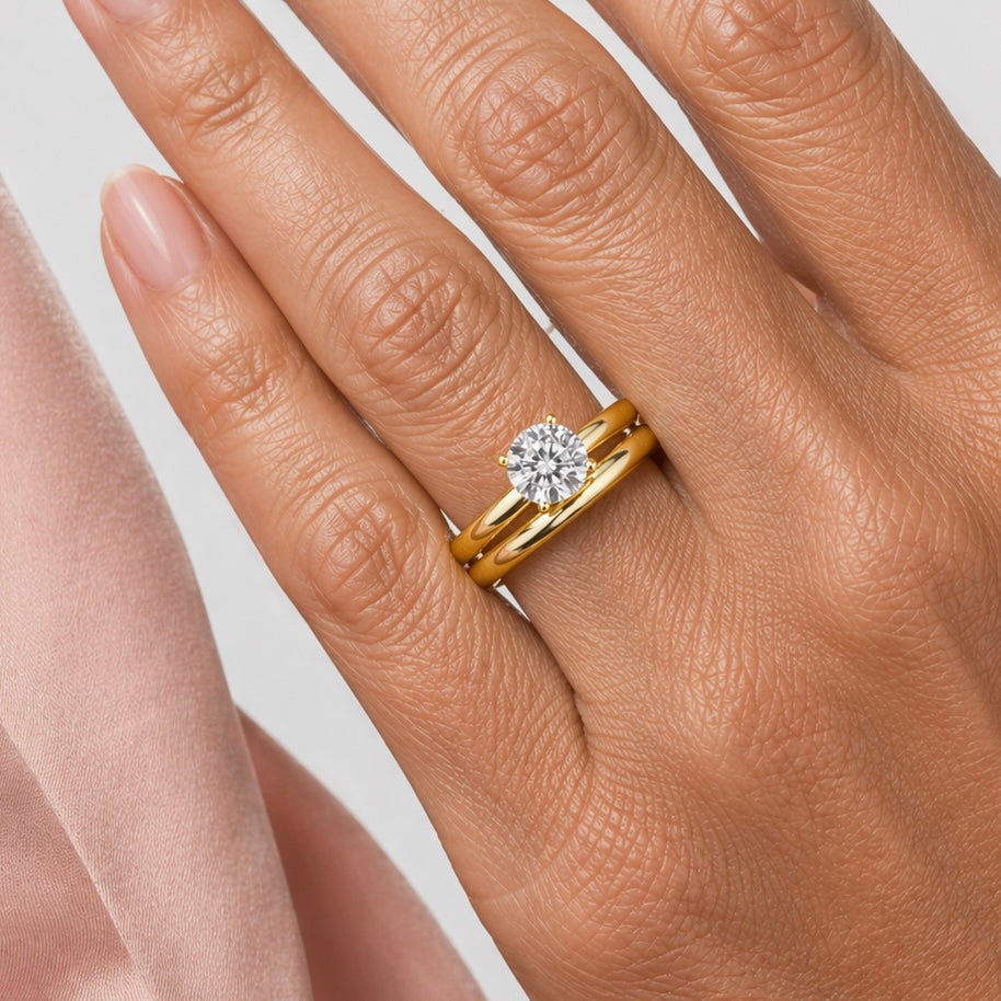 The understated elegance of a plain wedding ring not only transcends time, but defines it. Pure in form and intention, it is a symbol of enduring commitment—unadorned, yet infinitely expressive. Its quiet refinement allows it to sit effortlessly alongside any engagement ring, enhancing rather than competing, in perfect harmony.