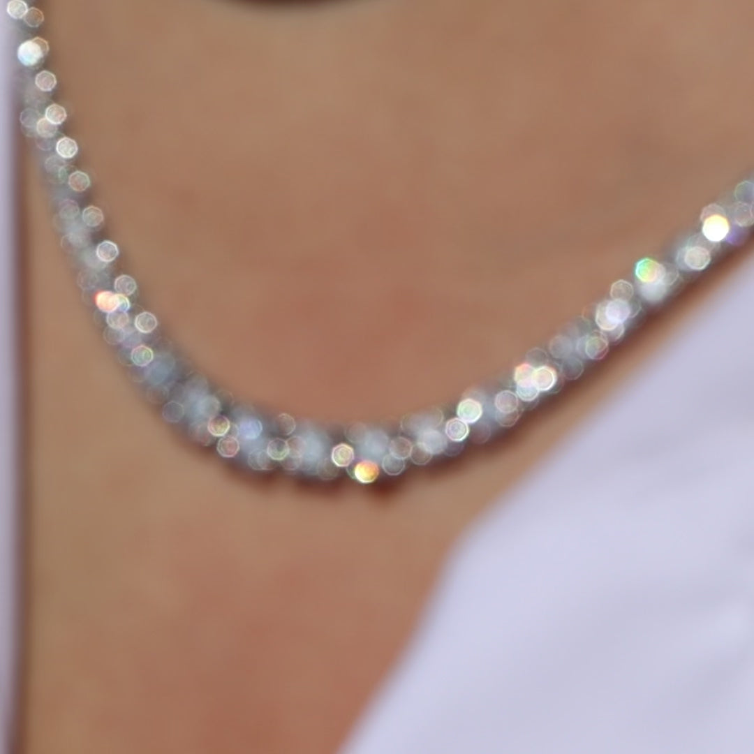 Indulge in unparalleled luxury with our Cannes diamond collarette, a breathtaking testament to extravagance and elegance. This exquisite necklace features over 10ct of graduating round diamonds, each meticulously chosen for its exceptional brilliance. Let the this majestic piece adorn the neckline with a captivating sparkle, making a statement that exudes sophistication. Embrace the of opulence with this extraordinary item, destined to become the crown jewel of your collection.