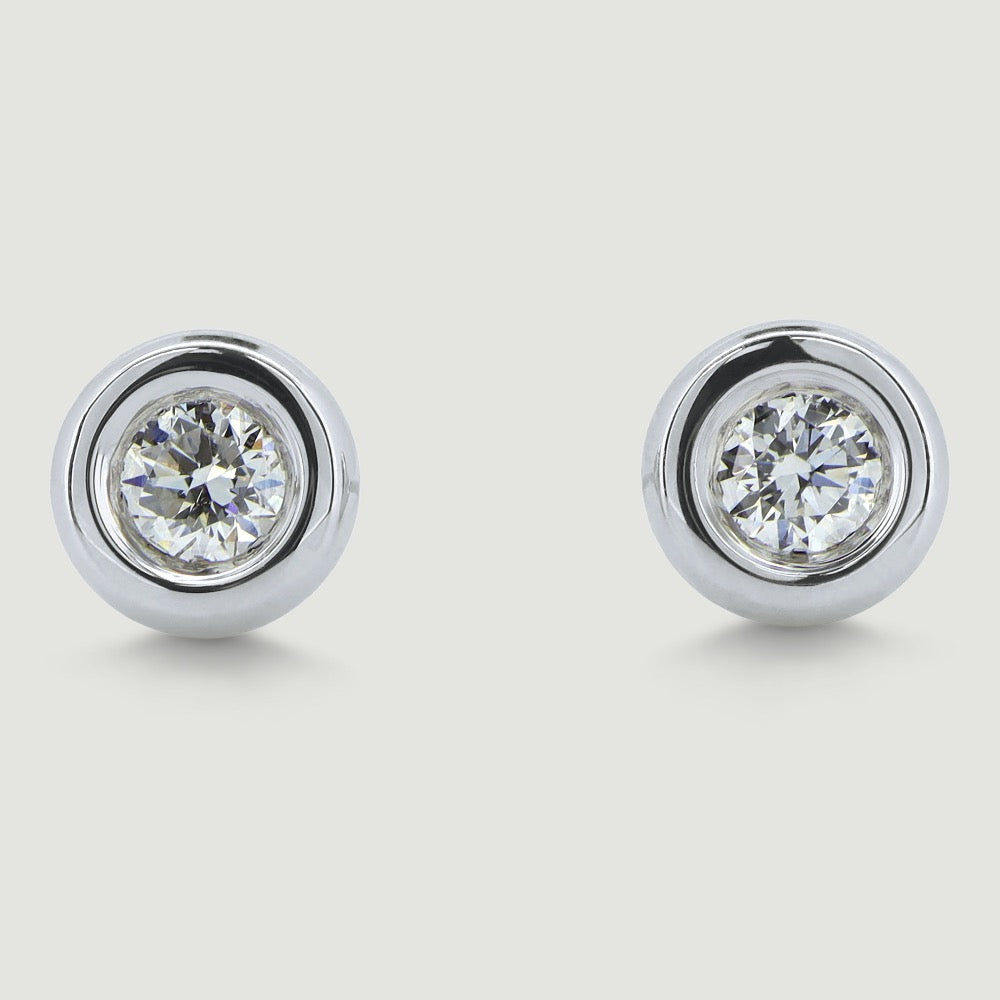 Elegantly held in a delicate rub-over setting. These exquisite round diamond earrings sit beautifully low on the lobe, capturing the essence of understated sophistication. Each movement catches the light, creating a mesmerising sparkle. Enhance your ensemble with these elegant, timeless stud earrings.