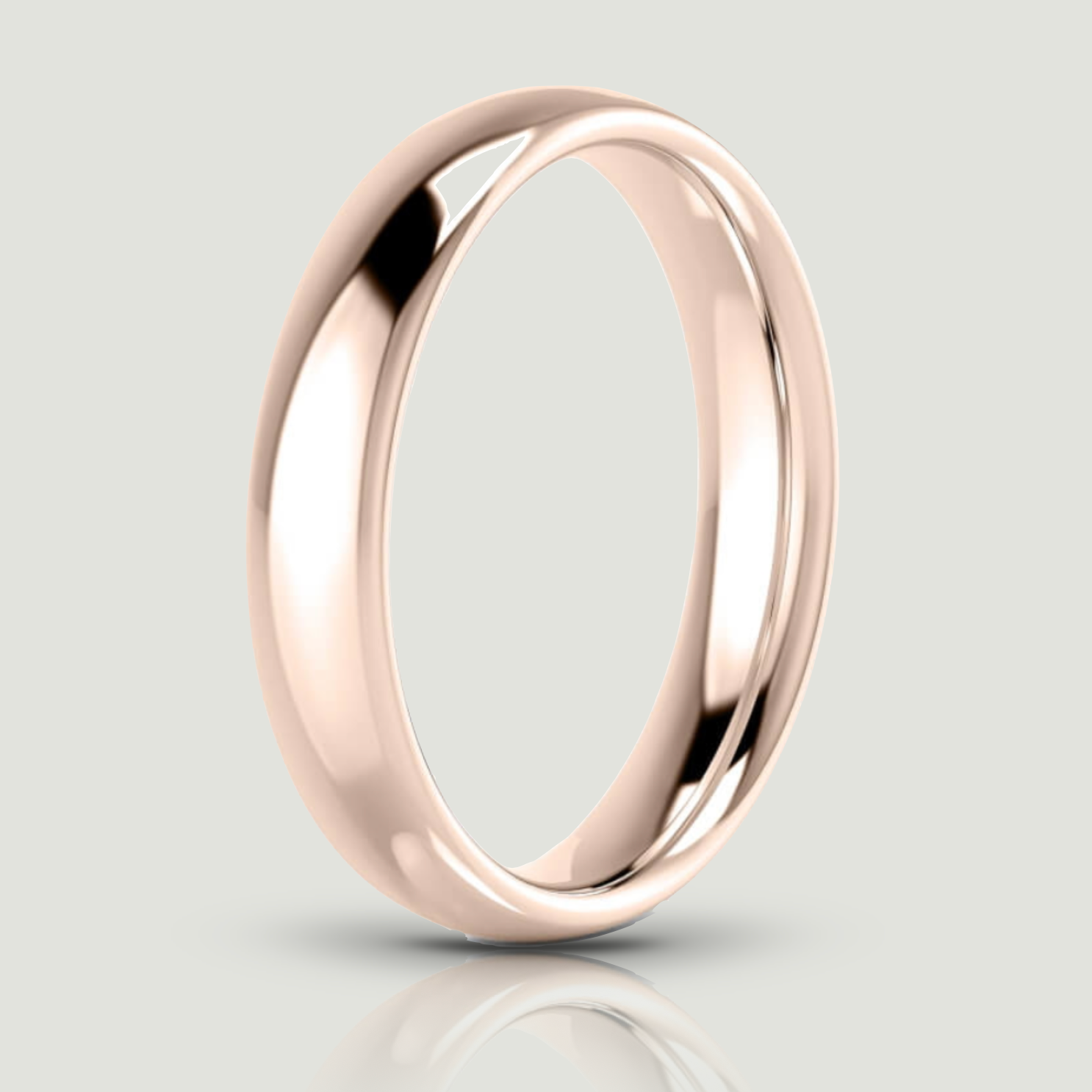 A timeless symbol of love and commitment, crafted in warm, romantic rose gold in a classic Traditional Court Shape. This 4.0mm wedding ring offers a refined yet confident presence on the hand, enhanced by its soft blush tone and subtle radiance. Its gently rounded interior and exterior ensure exceptional comfort, allowing it to be worn with ease from morning to night. Thoughtfully made for durability and lasting style, this elegant band is a sophisticated choice for those seeking a traditional design with a distinctive, quietly masculine character.