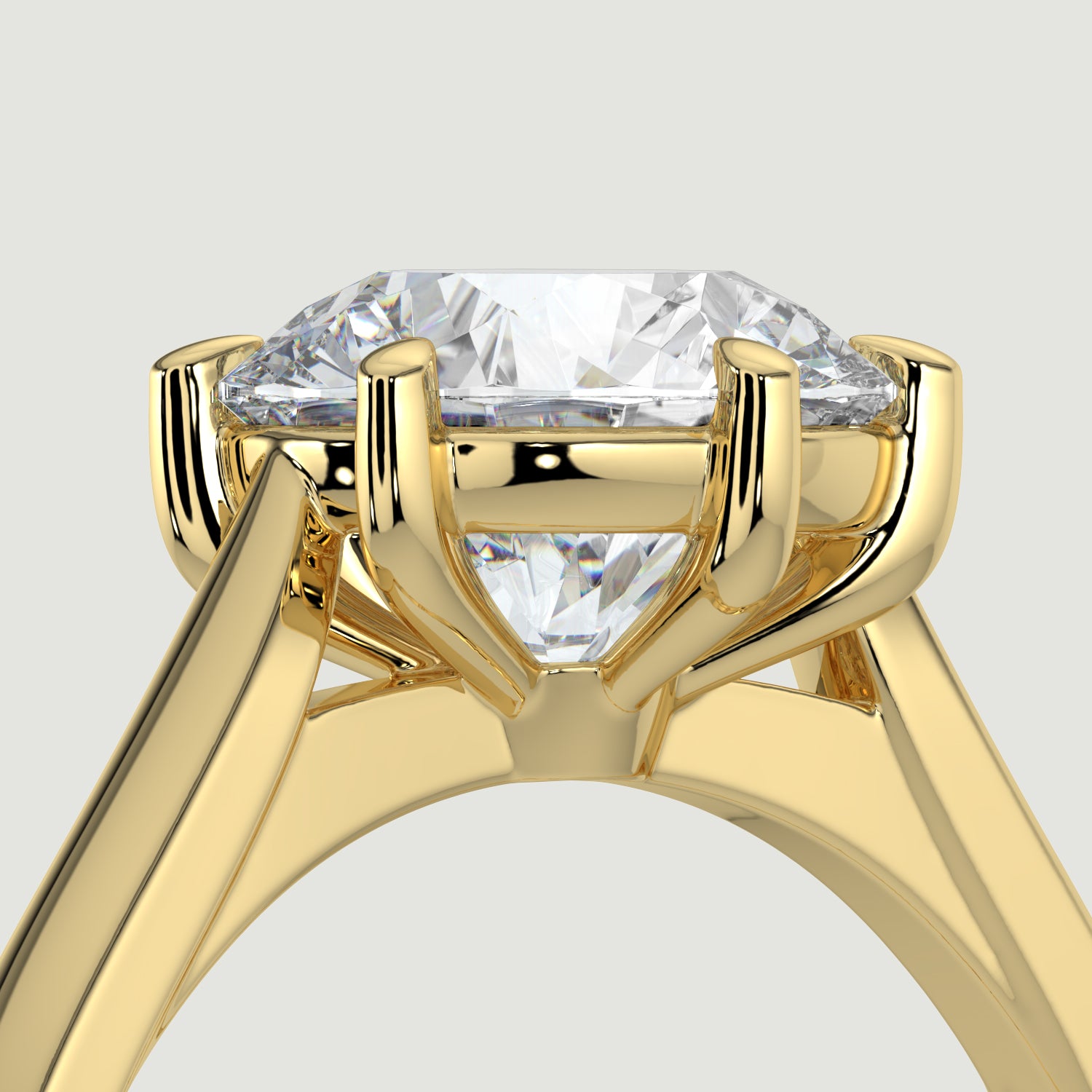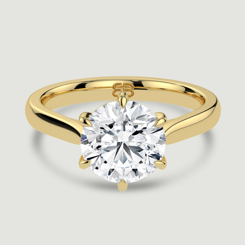 Meticulously crafted to order, this ring is designed to reflect the uniqueness of your love story. The six-claw setting not only provides extra security but also lends a graceful symmetry, allowing the diamond to shine with unparalleled brilliance. The rich, warm glow of 18ct yellow gold perfectly complements the scintillating beauty of the round brilliant-cut diamond, making this piece an exquisite fusion of tradition and modern sophistication.