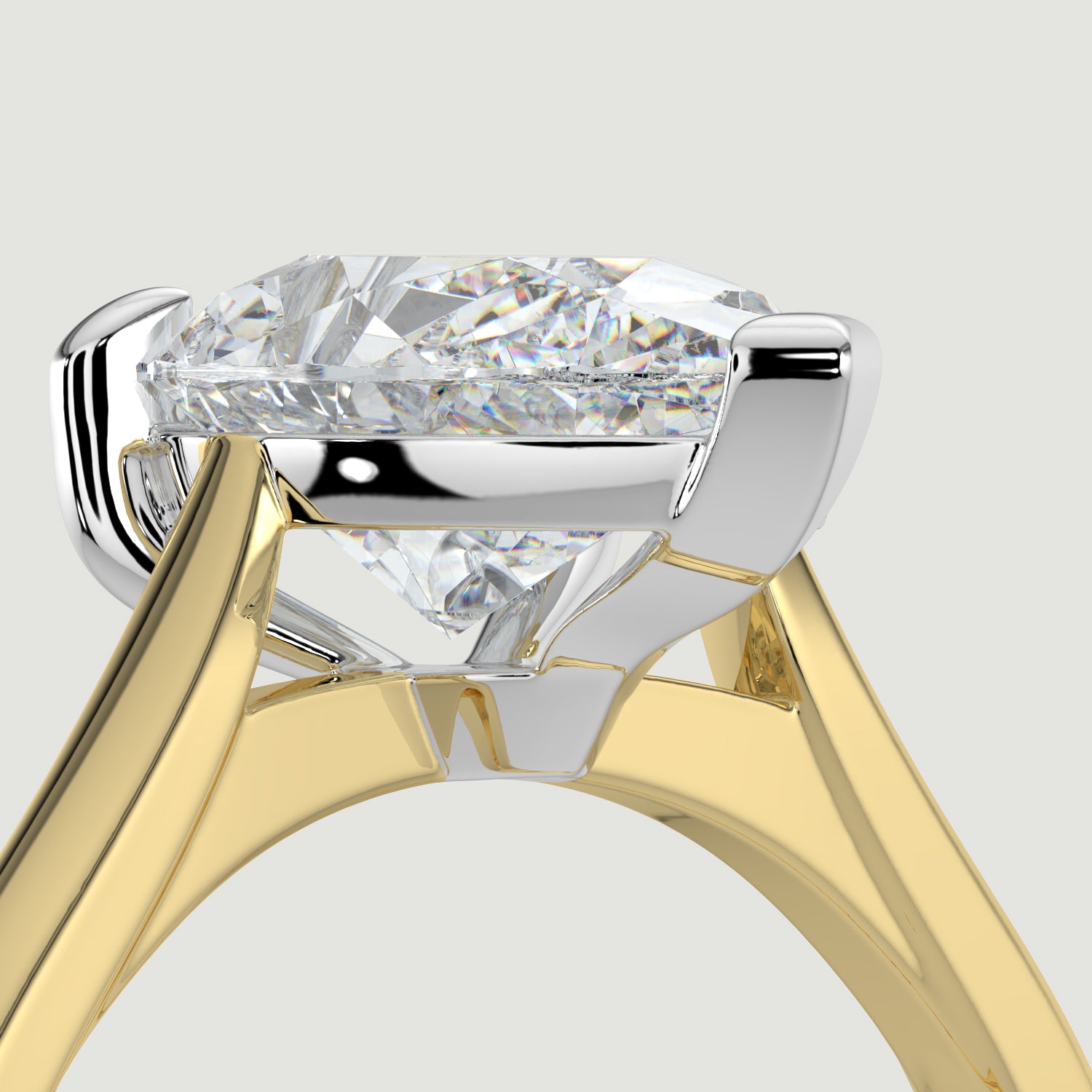 Each ring is handcrafted to order, ensuring that it is as unique as your love story. The combination of the platinum setting and yellow gold band offers a sophisticated contrast, making the pear-shaped diamond truly stand out.