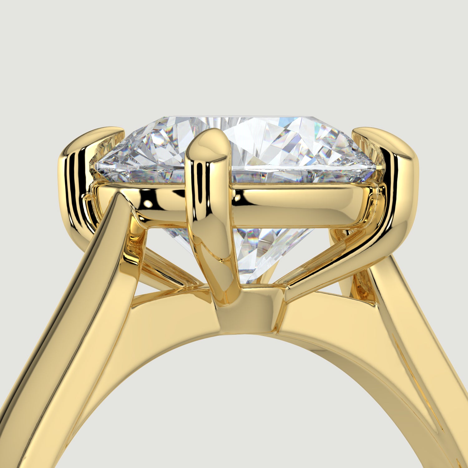 This 18ct yellow gold solitaire with a round diamond is designed for those who appreciate both tradition and luxury, destined to become a cherished symbol of your love story.