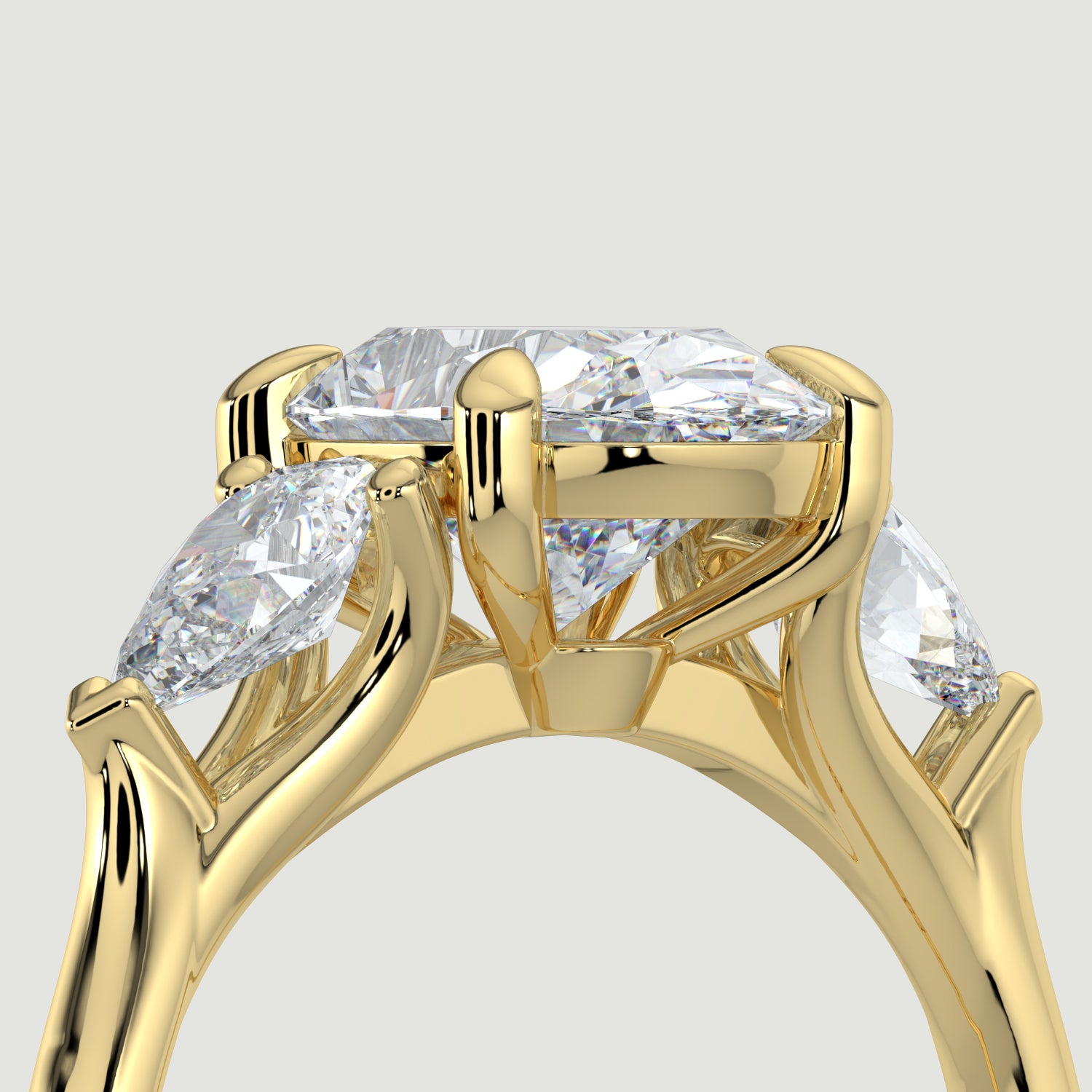 The 6x4mm pear-shaped lab-grown diamonds gracefully taper along the finger, adding a touch of je ne sais quoi without ever stealing attention from the centre stone. This delicate balance makes them the perfect choice for those seeking to introduce a subtle yet distinctive element to their engagement ring, offering a refined twist on a timeless design.