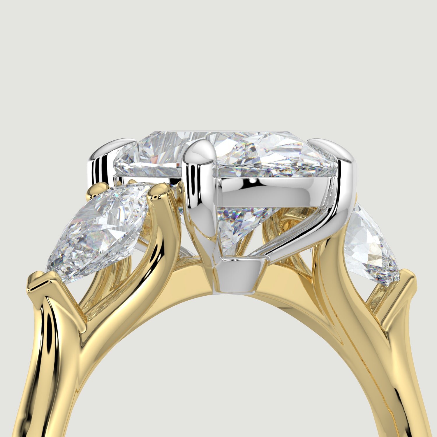 Designed for those who value elegance and symbolism, this ring celebrates the journey of love with its unique blend of shapes and materials. Each piece is custom-crafted, ensuring a ring that reflects your unique love story. Embrace the beauty and meaning behind this remarkable trilogy engagement ring.