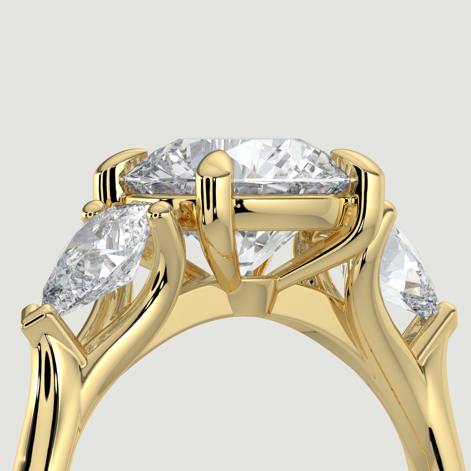 The Mayfair Brilliant Round Diamond Engagement Ring with Pear Shaped Side Stones